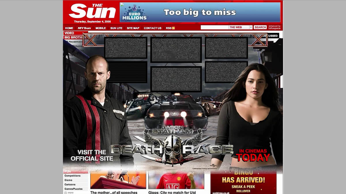 BRIEF - To support the launch of Jason Statham’s latest high-octane, futuristic action film, I was tasked to design and deliver an attention-grabbing homepage takeover (HPTO) for The Sun Newspaper. Designed to capture immediate interest and drive maximum clicks across the platformto drive up ticket sales on the release date.